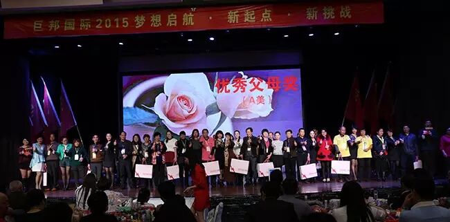 优秀员工需要有良好的成长环境,而良好的成长环境必须来源于父母!父母辛苦之劳是儿女成长成才之首功!在台上,大舅哥以及总裁们亲手为优秀父母奉上奖品,紧紧握手,深情拥抱,欢笑相谈!在父母们的发言中,对于巨邦为儿女们打造的这么好的平台的感谢和祝福之声同样不绝于耳!