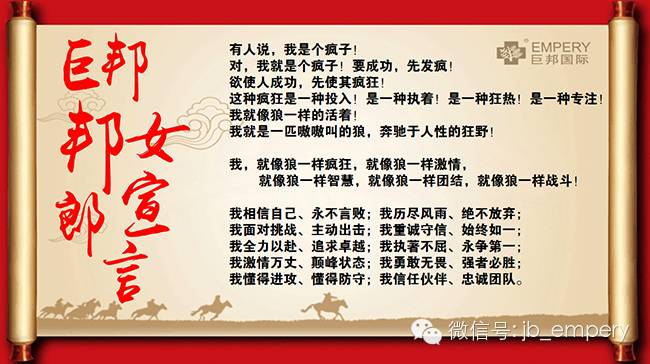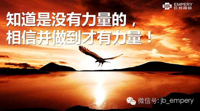 说到是没有力量的,相信并做到才有力量!说到做到,这是巨邦人的尊严!挑战不可能,创造奇迹,这是巨邦人的骄傲!
