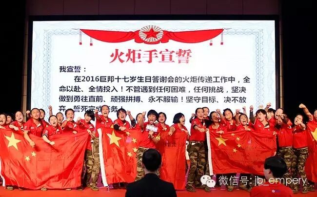 12月15日,寒冷的劲风在深圳大鹏呼啸不止,而在巨邦传媒影视基地里,专属于巨邦精英们的无限精彩和激情正火热上演,持续高涨!从张红总裁高瞻远瞩的课程《巨邦2016年战略规划》,到紧迫的2016巨邦年会门票邀约话术考核,从激动人心的军令状目标签订仪式到庄重激昂的2016火炬传递启动仪式、火炬手宣誓仪式,家人们的精神不断振奋,斗志不断高昂!